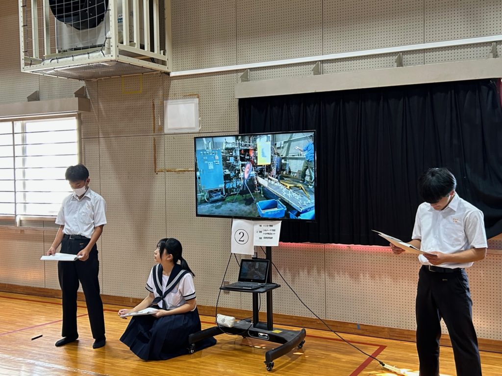 生徒たち、保護者の皆様、新富町内の企業の従業員が見守る中