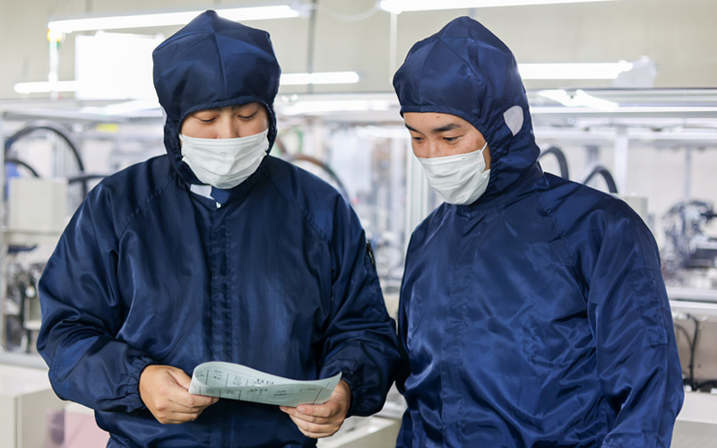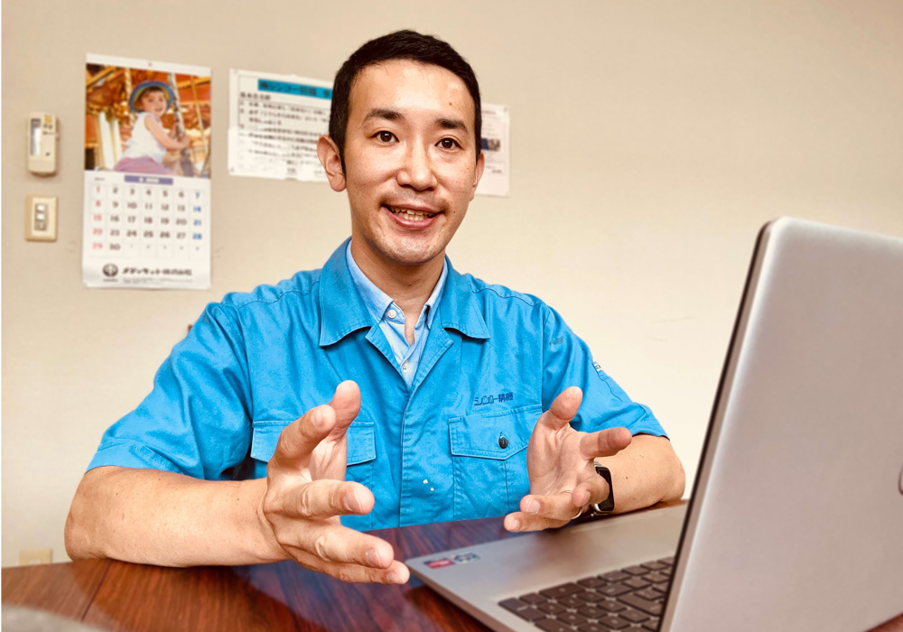 私はこれまで、教育関連、農業関連の仕事に従事してきました。そのため、モノづくりに関して知見が足りませんでした。 正直、歴史ある製造業の会社に未経験で挑戦する事に対して、「本当に自分はこの会社でやっていくことができるのだろうか」 という不安がありました。 ただ、面接をしてくださった社長と専務取締役の人柄の良さを肌で感じ、この人たちのもとで働き、成長したいと思い、 入社を決意しました。